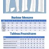 Ce tableau fournit les mesures essentielles pour choisir des vêtements pour femmes, selon différentes tailles standardisées. Les mesures sont données en centimètres.